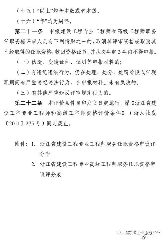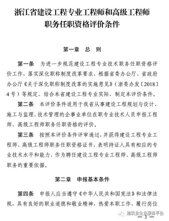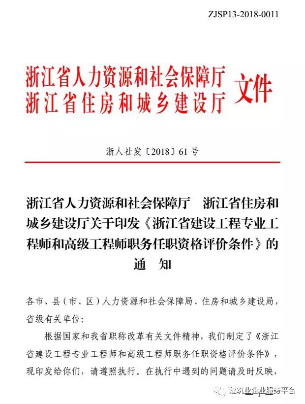 【浙江省人社厅 浙江省建设厅】发布——2018年《浙江省建设工程专业工程师和高级工程师职务任职资格评价条件》