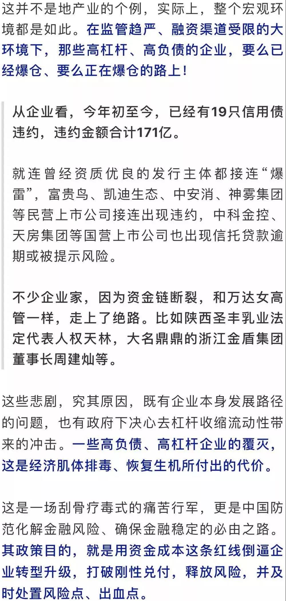 当房企在资金宽松环境中盲目大干快上的时候,宏观环境悄悄改变——随着金融去杠杆趋严,货币政策趋紧,加上打破刚兑导致违约事件频发,房地产企业贷款和发债融资也不再那么便宜了、那么容易了。
