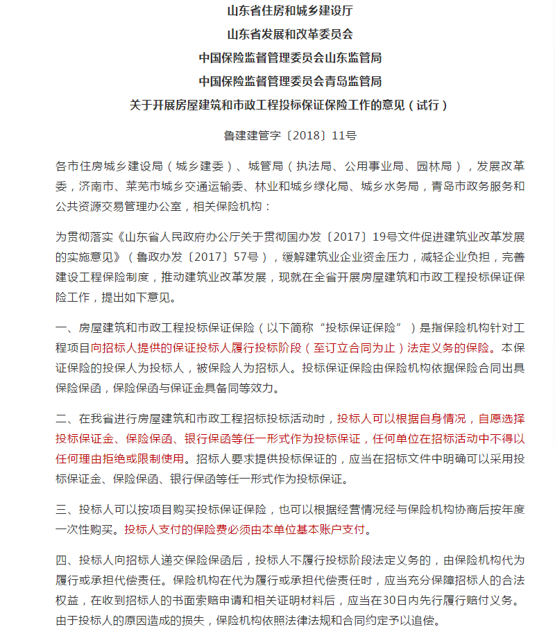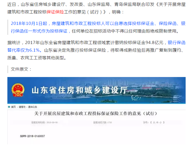 10月1日起,投标保证保险取代保证金!山东开启新试点