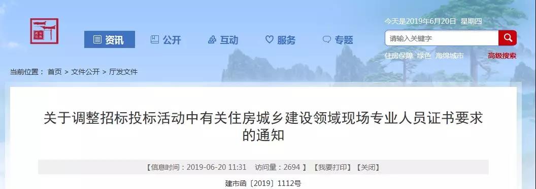 刚刚,安徽省住建厅发布《关于调整招标投标活动中有关住房城乡建设领域现场专业人员证书要求的通知》。《通知》明确: