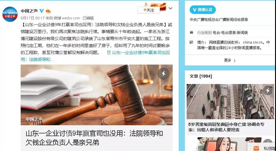 事情要从十年前说起。一家名为浙江博元建设股份有限公司的建筑公司承接了山东省青州市平安大厦的施工工程。按照约定工期,他们在一年多的时间里盖好了房子,但却用了九年的时间讨要剩余的工程款,甚至对簿公堂都没有解决问题。