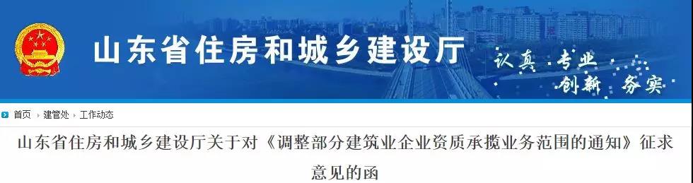 为扶持建企做大做强,近日山东省住房和城乡建设厅、交通运输厅、水利厅联合发文,就《调整部分建筑业企业资质承揽业务范围的通知》公开征求意见。《通知》提到: