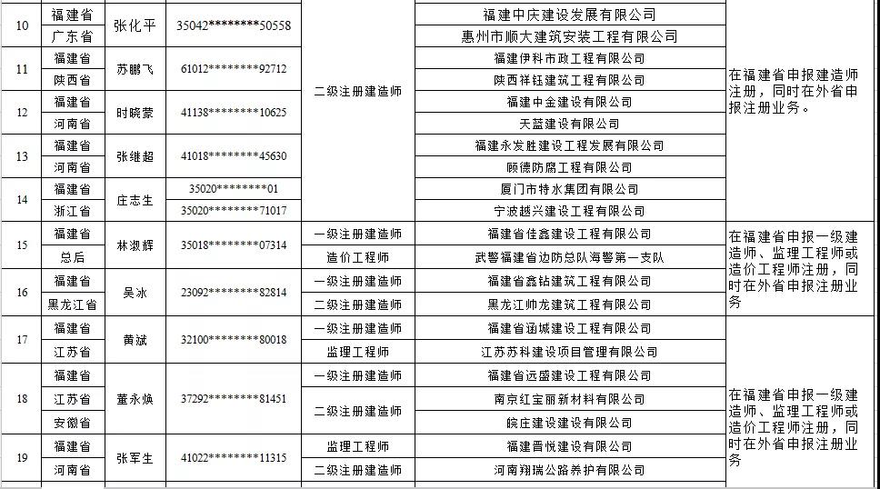 福建省发布的这20个人员名单,基本上都是两本证书在手;部分人员甚至考了三本,分别挂在不同的省份。