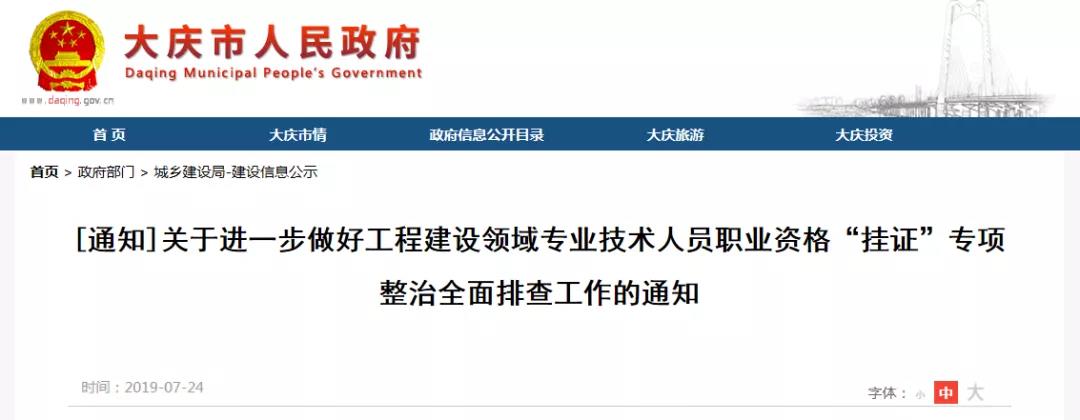 7月24日,大庆市住建局发布《关于进一步做好工程建设领域专业技术人员职业资格“挂证”专项整治全面排查工作的通知》,并公布了首批50家“挂证”情况全面排查企业名单。