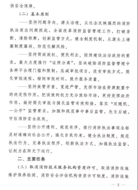 一是取消消防技术服务机构资质许可,取消消防设施维护保养检测、消防安全评估机构资质许可制度,企业办理营业执照后即可开展经营活动。