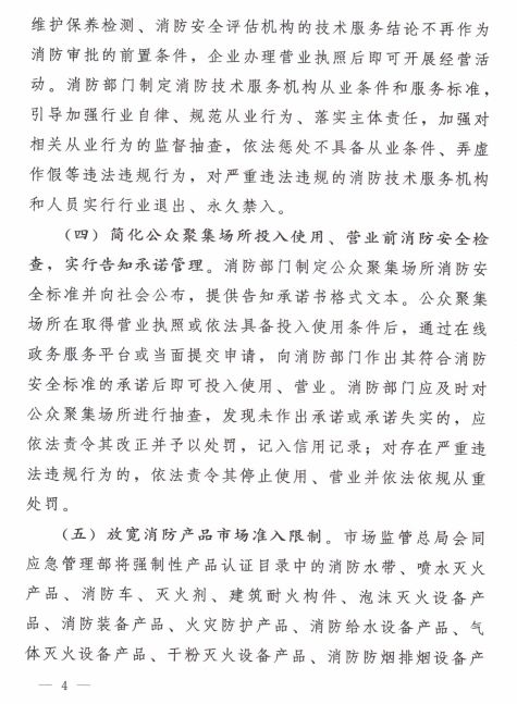 谢谢你的提问。《关于深化消防执法改革的意见》明确,公众聚集场所取得营业执照后,作出其符合消防安全标准的承诺后即可投入使用、营业;消防设施维护保养检测、消防安全评估机构办理营业执照后即可开展经营活动,不再需要到消防部门办理审批。