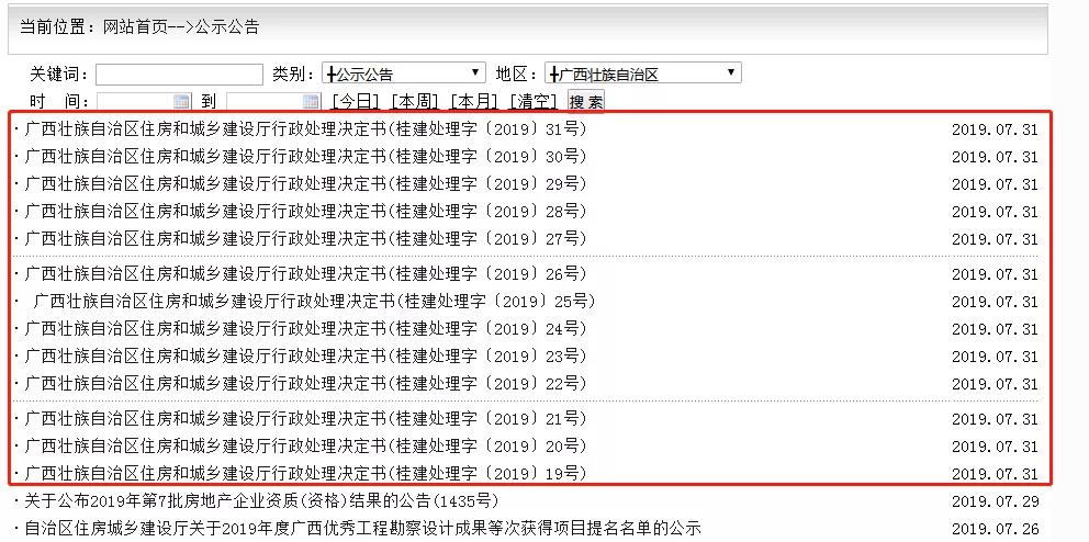 7月31日,广西住建厅连续发布13条通报,对7起事故、致8人死亡的相关责任单位进行处罚。经梳理,情况如下: