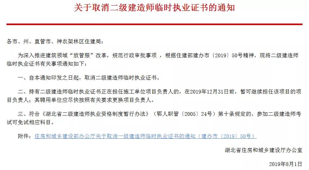 取消二建临时执业证书,湖北率先明确!12万临时二建何去何从?