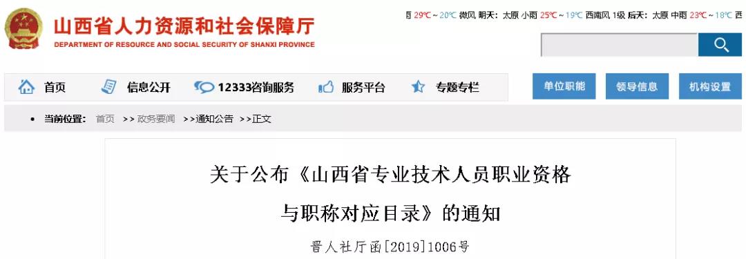 关于公布《山西省专业技术人员职业资格与职称对应目录》的通知