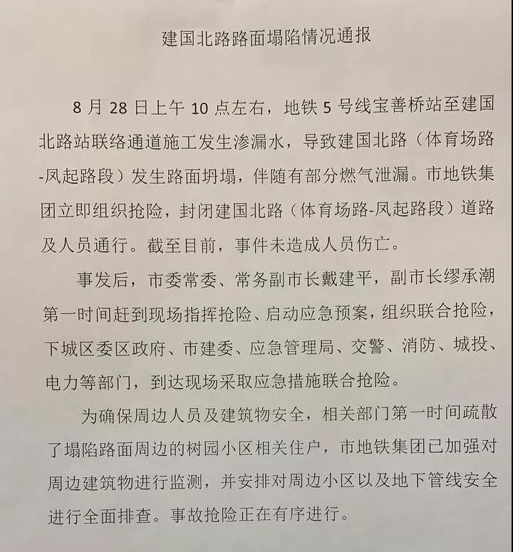 杭州下城区召开“建国北路路面塌陷情况通报会”,通报如下▼