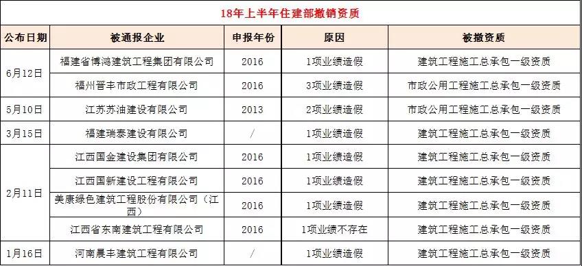 上半年(1--6月份),有16家企业的18项资质被住建部撤销,业绩造假数目更是多达58项。