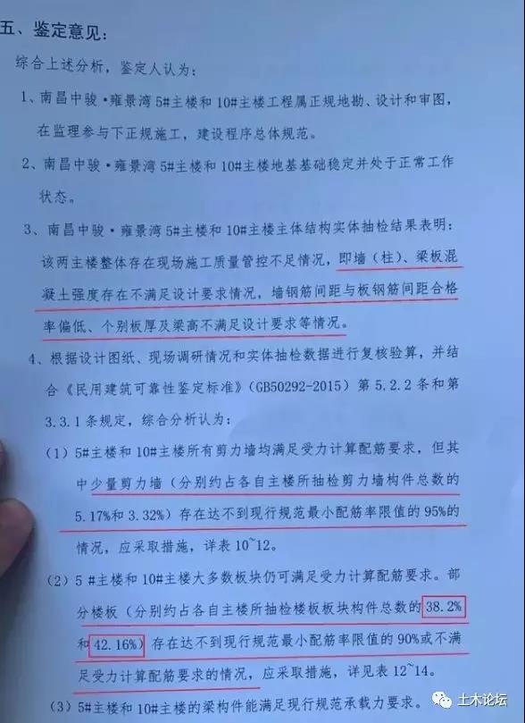 因为地库坍塌,小业主惊慌失措,要求对坍塌周边5#主楼、10#主楼进行质量鉴定,经过一段时间的详细调查,主楼最新权威结果终于出炉——专家组鉴定意见认为: