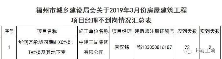 福州市城乡建设局网站公开信息显示,“华润万象城四期MIXC#楼、TA#楼及其地下室”项目的施工单位中建三局集团有限公司, 项目经理为唐汉铭,今年3月、4月和7月,项目经理均被通报。