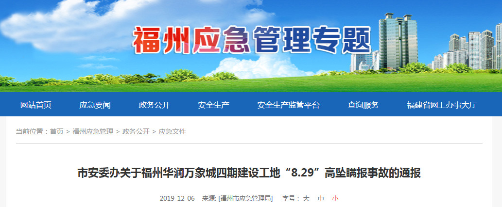 12月6日,福建省福州市应急管理局通报了“8·29”高坠瞒报事故。