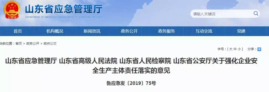 山东省应急管理厅 山东省高级人民法院 山东省人民检察院 山东省公安厅关于强化企业安全生产主体责任落实的意见