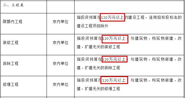 指投资预算在120万元以上的建设工程,适用招标投标法的建设工程项目除外 |