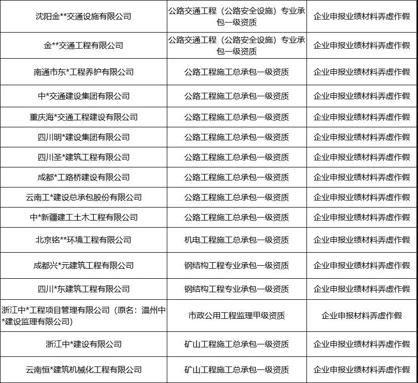 对这些企业,住建部予以通报批评,不批准其资质申请,将其不良行为在全国建筑市场监管公共服务平台予以公布。