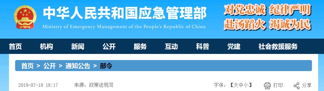 第88号公布,根据2019年7月11日应急管理部令