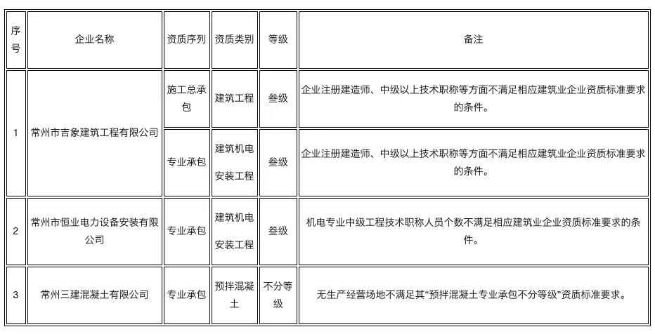 常州:因建造师、中级职称人数不足等,撤回3家企业资质!