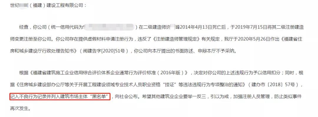 3月30日,福建省13人重复注册,拟撤销一建、二建、监理注册证书,计入不良行为记录、纳入“黑名单”;