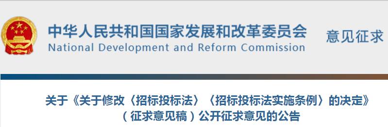 关于《关于修改〈招标投标法〉〈招标投标法实施条例〉的决定》(征求意见稿)公开征求意见的公告