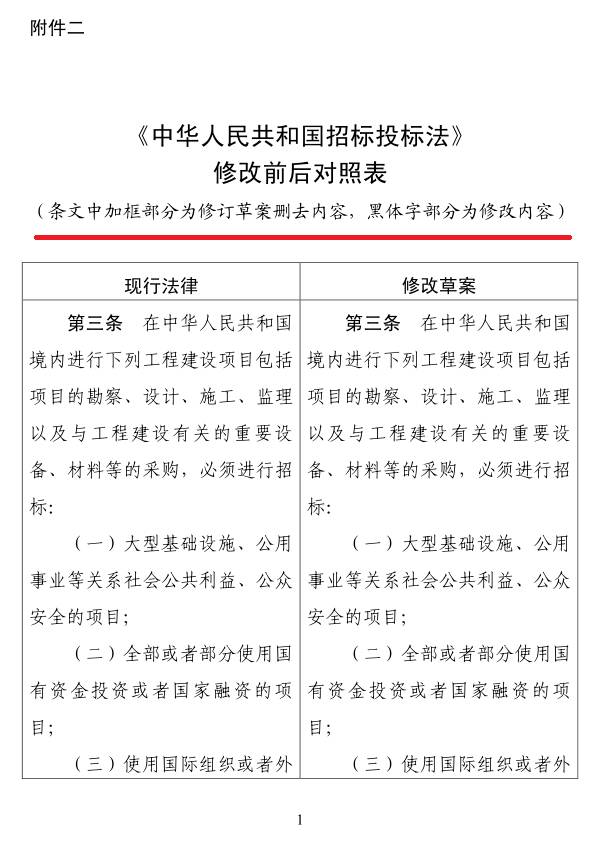 附件:1.关于修改《招标投标法》《招标投标法实施条例》的决定(征求意见稿)