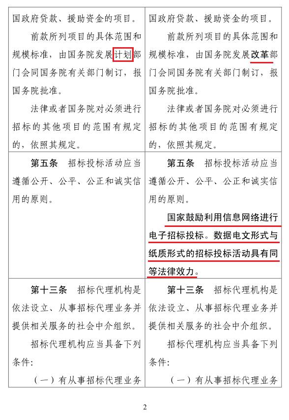 2.《招标投标法》《招标投标法实施条例》修改前后对照表